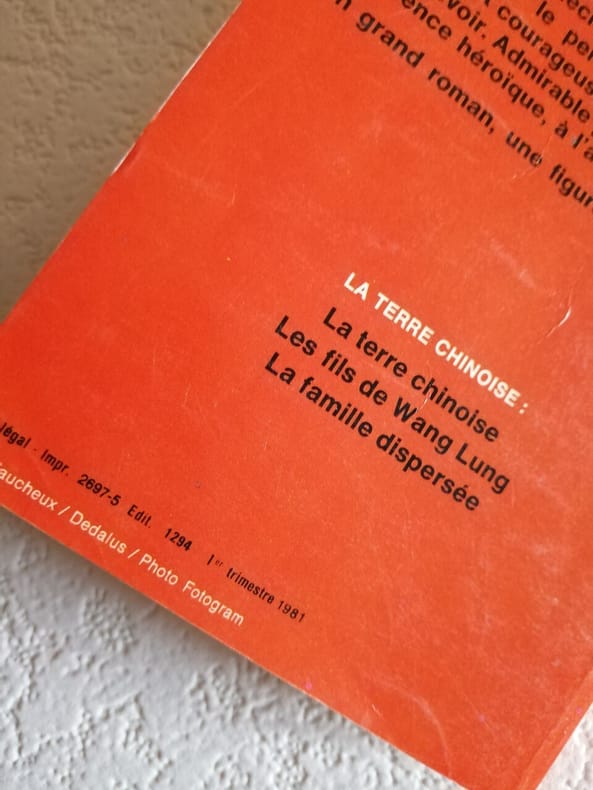 La terre chinoise et les fils de Wang Lung traduits par Varlet Théo / La famille dispersée traduit âr S. Campaux / Classification Dewey : 820-Littératures anglaise et anglo-saxonne