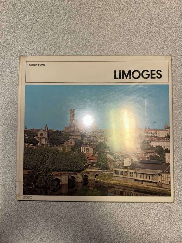 1950 plaquette (booklet) in-octavo, dos muet orange, première de couverture imprimée (front cover printed), illustrations in et hors-texte (in text and full page engraving) et 1 plan de Limoges - replié en couleurs (folding plan), 72 pages, sans date (no date) (les années 1920-30 environ) à Limoges Imprimerie et Librairie Limousines Ducourtieux,
