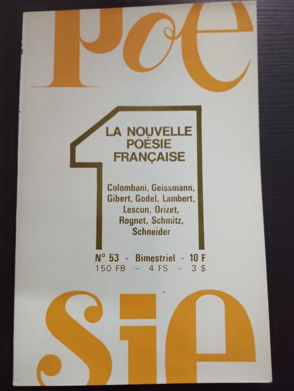 Sommaire : LA NOUVELLE POESIE FRANÇAISE. Dix poètes de Haut Langage, par Jean BRETON. Poèmes de :Henri COLOMBANI, André GEISSMANN, Pierre GIBERT, Vahé GODEL, Alain LAMBERT, François LESCUN, Jean ORIZET, Richard ROGNET, André SCHMITZ, Joseph Paul SCHNEIDER Classification Dewey : 841-Poésie