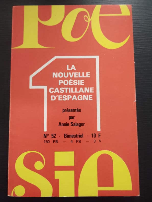 Sommaire : LA NOUVELLE POÉSIE CASTILLANE D’ESPAGNE. Choix et traductions d’Annie SALAGER. Du réalisme au modernisme malgré les terrorismes littéraires, par José BATLLO. Poèmes de Carlos ALVAREZ, José Maria ALVAREZ, Félix de AZUA, José BATLLO, Guillermo CARNERO, Antonio CARJAVAL, Agustin DELGADO, Jaime Gil de BIEDMA, Angel GONZALEZ, José Agustín GOYTISOLO, Félix GRANDE, Luis LOPEZ ALVAREZ, Joaquin MARCO, Antonio MARTINEZ SARRION, Ana Maria MOIX, Enrique MORON, Carlos Edmundo de ORY, Leopoldo Maria PANERO, Angel PARIENTE, Claudio RODRIGUEZ, Lazaro SANTANA, Rafael SOTO VERGES, José Miguel ULLAN, José Angel VALENTE, Manuel VASQUEZ MONTALBAN, Bibliographies Classification Dewey : 841-Poésie
