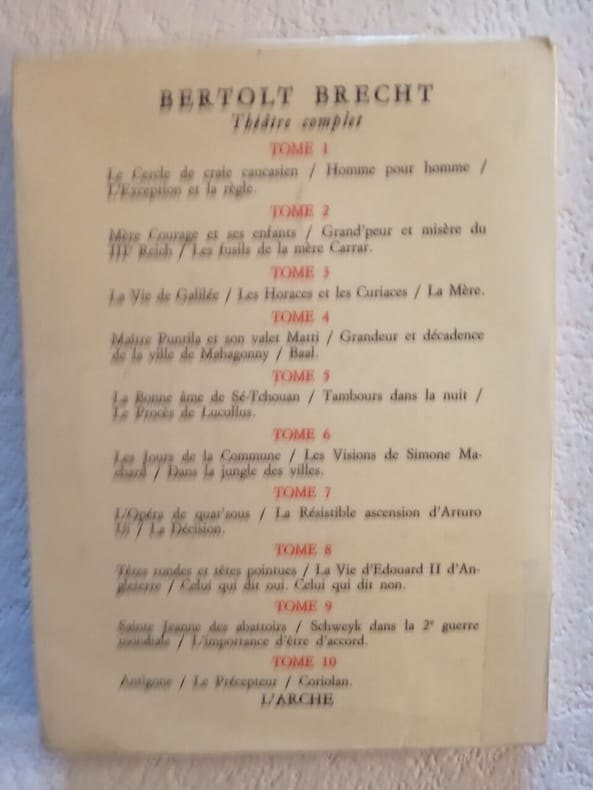 Paris : Editions de l'Herne, 1979 et 1982. 2 tomes in-4 brochés (27 x 21 cm), 237-285 pages, sous la direction de Bernard Dort et J. F. Peyret. Ecritures, repères, Berlin (1924-1933), l'exil (1933-1949), Berlin Est (1949-1956), épilogue, bibliographie. Très bon état.
