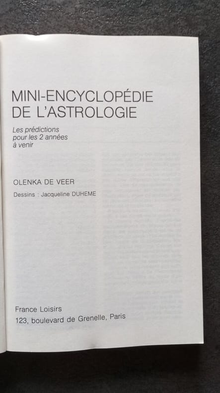 Editions France Loisirs 1985 1985. Olenka de Veer: Mini encyclopédie de l'astrologie/ Editions France Loisirs 1985 . Olenka de Veer: Mini encyclopédie de l'astrologie/ Editions France Loisirs 1985