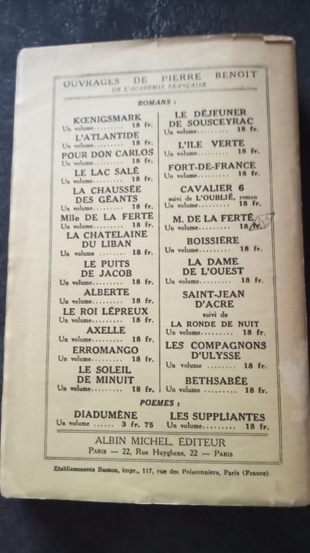 Tallandier. 10 mars 1941. In-12. Broché. Bon état, Couv. convenable, Dos satisfaisant, Intérieur frais. Paginé de 192 à 240. Texte en colonnes.. . . . Classification Dewey : 840-Littératures des langues romanes. Littérature française
