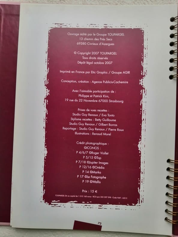 TOUPARGEL. 2007. In-8. Relié. Bon état, Couv. convenable, Dos satisfaisant, Intérieur frais. 72 pages - nombreuses illustrations en couleurs dans et hors texte - une étiquette collée sur le 1er plat - reliure à spirale à l'intérieur de l'ouvrage.. . . . Classification Dewey : 641.5-Cuisine, art culinaire