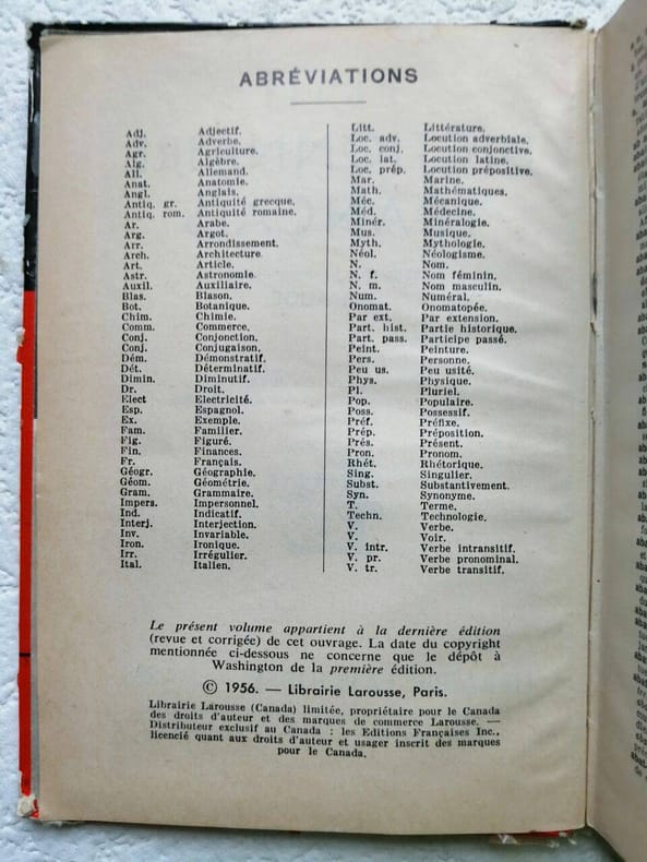 DIDIER - 19° EDITION. 1852. In-16. Relié demi-cuir. Etat d'usage, Coins frottés, Dos abîmé, Intérieur frais. 575 pages. Frotnispcie : dessin en noir et blanc. Bandeaux en noir et blanc. Titre, filets dorés sur le dos cuir marron.. . . . Classification Dewey : 443-Dictionnaire français