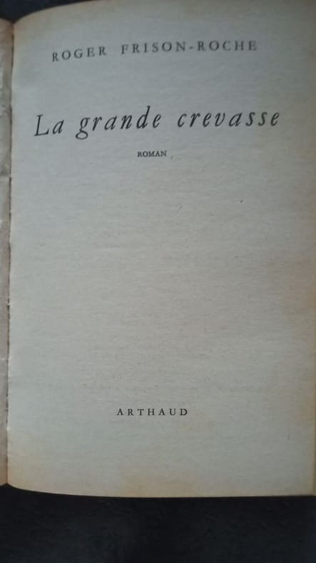 Arthaud 1948 in8. 1948. Broché. La Grande Crevasse est le deuxième tome d'une trilogie de Roger Frison-Roche publié en 1948. Il raconte l'histoire de Brigitte une Parisienne oisive qui lors d'un séjour à Chamonix rencontre Zian un guide de montagne. Cette rencontre la pousse à découvrir l'escalade et les sommets déclenchant en elle une passion profonde pour la montagne mais aussi une relation amoureuse intense qui se transforme en épreuve face à la solitude et aux dangers de la vie de guide