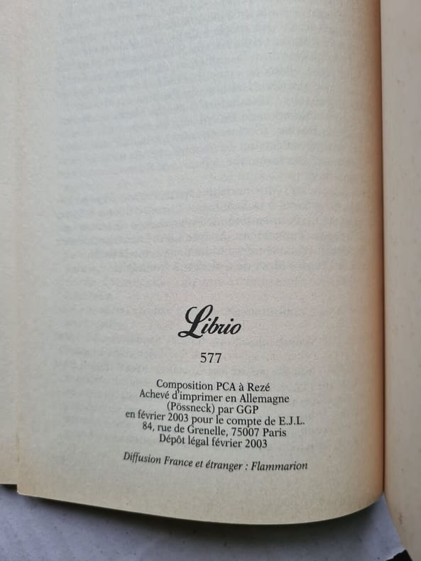 LIBRIO. 2003. In-8. Broché. Etat d'usage, Coins frottés, Dos frotté, Intérieur frais. 94 pages - annotations à l'encre sur la page de titre.. . . . Classification Dewey : 840.091-XX ème siècle