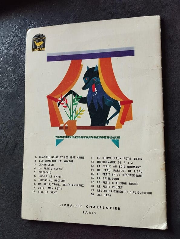 Dessin original Dessin original en couleurs (environ 19,5 x 23 cm sur support 20 x 24 cm), illustrant le Petit Chaperon Rouge et le Grand Méchant Loup sur fond bleu nuit ; quelques marques d'usage, une pliure dans le coin inférieur, par ailleurs assez bon état. Livraison a domicile (La Poste) ou en Mondial Relay sur simple demande.
