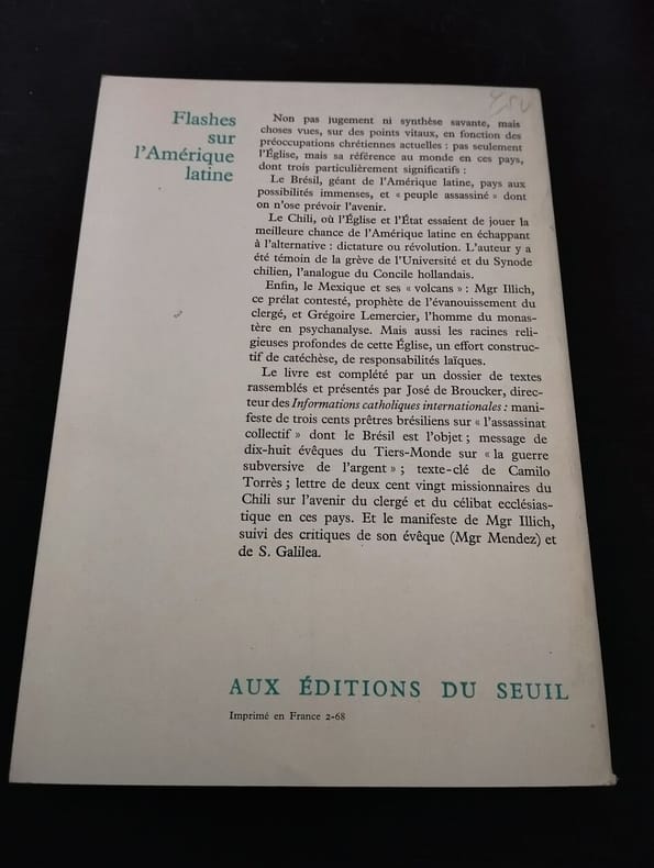 Le Brésil, un peuple assassiné. Le Chili fera-t-il l'économie d'une révolution? Mexique terre de volcans: le monastère de la psychanalyse, la bombe de Mgr Illich. I Classification Dewey : 980-Histoire générale de l'Amérique du Sud