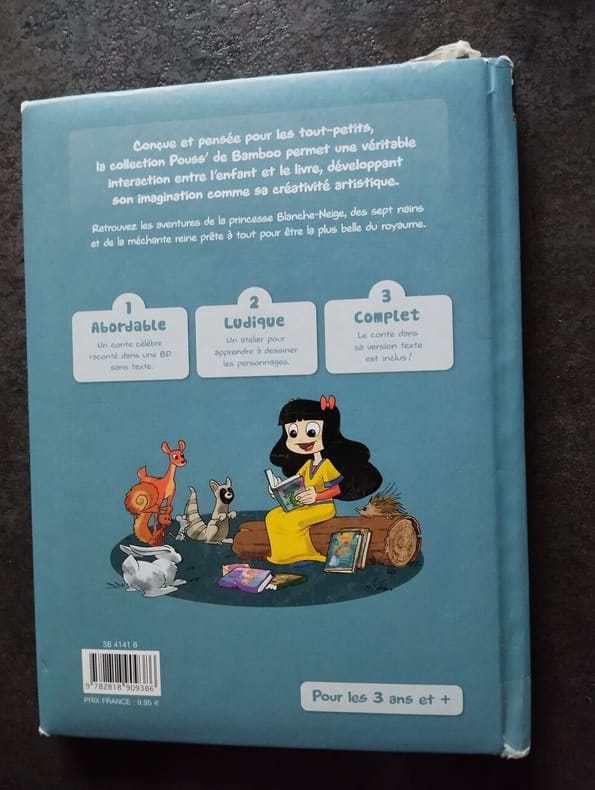 Trois volumes : 1) Blanche Neige et les sept nains in 4 broché, 225x300mm, couverture illustrée en couleurs, 8 pages, 4 illustrations en couleurs à pleine page 2 en noir dans le texte. Imprimerie Fortin Paris 1939. 2)Blanche Neige et les sept nains In 4 cartonné, 225x295mm, premier plat illustré en couleurs, titre sur page de garde, 42 pages, illustrations en noir dans le texte et en couleurs sur double page, de Simone DELEUIL. Editions BIAS 1958. Bon exemplaire. 3)Blanche Neige et les sept nains in 4 cartonné 240x310mm, couverture illustrée en couleur dos bleu, titre, 59 pages, 8 illustrations en couleurs hors-texte non signées, imprimerie PROTTIN Liège Belgique sans date. Les trois volumes