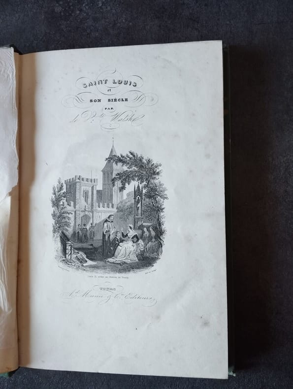 Biographie de Saint-Louis par le vicomte Walsh (1785-1860), écrivain du camp légitimiste et directeur de L'Echo de la Jeune France, revue fondée en 1833. La revue est liée au mouvement romantique et le terme de Jeune France est d'ailleurs utilisé pour décrire des romantiques opposés au traditionalisme.....EDITION ORIGINALE....Intérieur sans rousseurs....RARE CARTONNAGE ROMANTIQUE EN BON ETAT (good condition). bon état