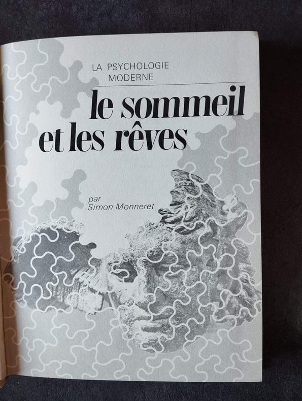 Contents, Chapitres : Les laboratoires du sommeil, les recherches et les méthodes - Origine et nature du sommeil, de l'animal à l'homme - Les fonctions du sommeil, psychologie et physiologie du sommeil - Tout pour un bon sommeil, les bonnes et les mauvaises habitudes - Au secours du sommeil, les moyens naturels, les médications - Freud et les rêves, la psychanalyse et le rêve - L'interprétation des rêves, la clef des songes aujourd'hui - Annexes : Les rêves dans l'Antiquité - Les rêves dans la littérature - Bibliographie et index petit manque de 2 cm/2 sur le haut du plat supérieur de la jaquette, infime dechirure sans manque sur le bas du mors du plat supérieur, sinon tres bon état