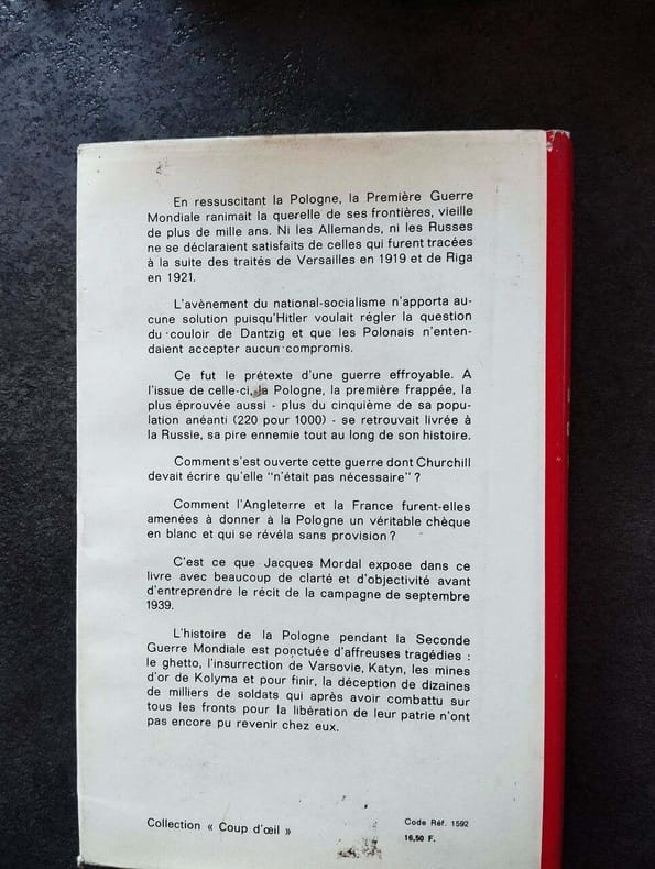 "Le titre de ce livre très intéressant mais aussi un peu partisan est trompeur. II ne s'agit pas seulement de la campagne de Pologne de septembre 1939, à laquelle l'auteur consacre une centaine de pages. Auparavant il traite en 106 pages l'histoire de la Pologne depuis 823 et ensuite, en 110 pages il expose la genèse et l'état du délicat problème de la Pologne d'après-guerre. (...) Le principal mérite du livre est de mettre en valeur le courage et la combativité des Polonais dans leur lutte contre I'Allemagne nationale-socialiste. D'une part, en soulignant l'âpreté de la résistance des armées polonaises en septembre 1939, d'autre part en décrivant, ce qui est peu connu en général, la participation ultérieure de combattants réguliers polonais au conflit mondial. Si la brigade polonaise combattant à Narvik avec le corps de débarquement franco-anglais est connue, on a parlé moins des 6200 aviateurs polonais participant avec la R.A.F. à la bataille aérienne d'Angleterre. Le 2e corps d'armée polonais planta le drapeau polonais sur Monte-Cassino le 18 mai 1944, tandis que la 1ère division blindée polonaise se battit de Falaise à Wilhelmshaven et que les parachutistes de la 1ère brigade polonaise se sacrifièrent à Arnhem en septembre 1944. Enfin, du côté soviétique, la 1ère armée polonaise, avec 5 divisions, participa de façon importante aux offensives victorieuses de 1944 et 1945 sur le front de l'Est..." (Albert Merglen, Revue d'histoire de la Deuxième Guerre mondiale, 1972)