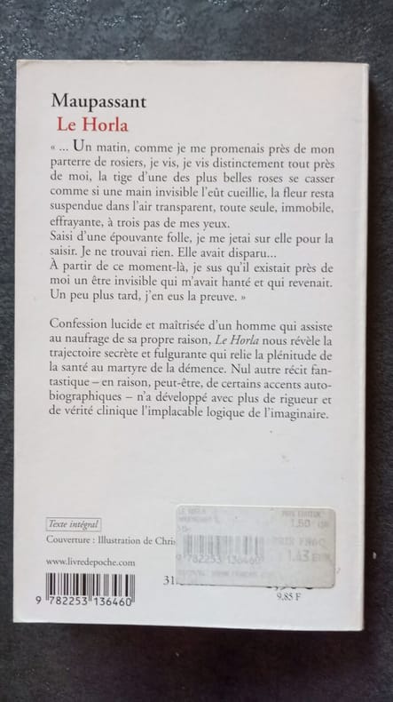 Le livre de poche / Classiques 1986 214 pages 11 1cm x 16 6cm x 1 1cm. 1986. broché. 214 pages. Cette nuit j'ai senti quelqu'un accroupi sur moi et qui sa bouche sur la mienne buvait ma vie entre mes lèvres. Etre surnaturel démon de la folie le Horla dévore l'âme de Maupassant. Avec un réalisme étonnant ce génial conteur décrit le mal qui l'emportera. Une autre folie tragique est celle du guide de montagne isolé dans la neige et angoissé de solitude. Maupassant sait dire aussi l'amour celui de la sarcelle pour sa femelle abattue celui de la jeune fille Clochette qui se jette par la fenêtre. On sent la mort s'approcher du vieil aristocrate jouisseur comme de la paysanne rusée. Le ton de ces nouvelles varie tour à tour cynique grivois ou sentimental. Maupassant voulait écrire l'émotion de la simple réalité. Mais sous l'apparente simplicité du conteur cette réalité toujours frémissante peut devenir inquiétante saisissante terrible