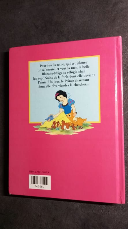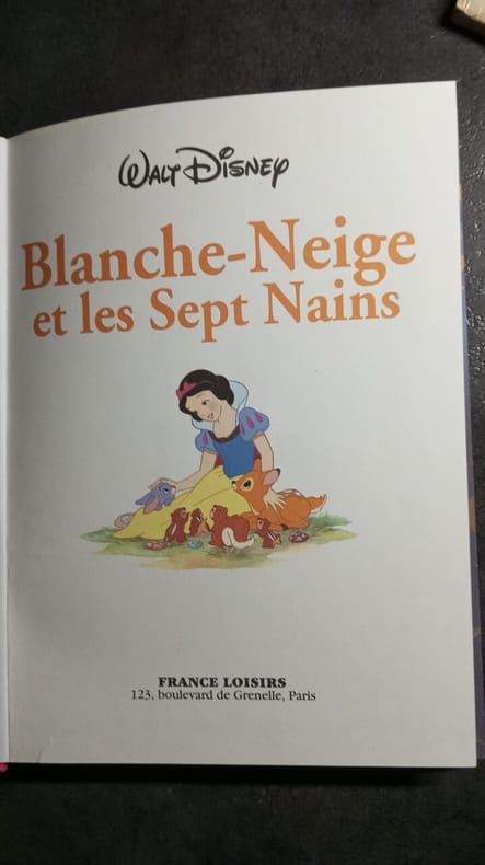 Trois volumes : 1) Blanche Neige et les sept nains in 4 broché, 225x300mm, couverture illustrée en couleurs, 8 pages, 4 illustrations en couleurs à pleine page 2 en noir dans le texte. Imprimerie Fortin Paris 1939. 2)Blanche Neige et les sept nains In 4 cartonné, 225x295mm, premier plat illustré en couleurs, titre sur page de garde, 42 pages, illustrations en noir dans le texte et en couleurs sur double page, de Simone DELEUIL. Editions BIAS 1958. Bon exemplaire. 3)Blanche Neige et les sept nains in 4 cartonné 240x310mm, couverture illustrée en couleur dos bleu, titre, 59 pages, 8 illustrations en couleurs hors-texte non signées, imprimerie PROTTIN Liège Belgique sans date. Les trois volumes
