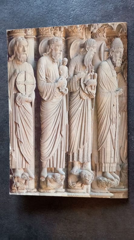 Chartres: Jean-Michel Garnier, 1994 in-4, 305 pages, photographies d'Edouard Fievet et Pierre Lefevre, dessins dans le texte. Glossaire, bibliographie. Reliure toile, jaquette, parfait état. Cette monographie décrit en détail les trois portails Royal, Nord et Sud.