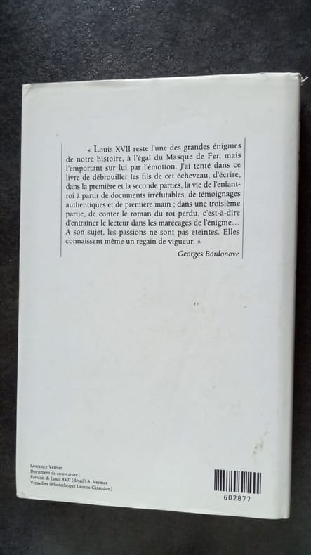 Orné de deux portraits gravés de Louis XVII (à 7 ans et à 50 ans), d'après Lebrun et Lecourt, en frontispice. Avec 2 fac-simile de signatures (le Dauphin et Naundorff). Louis XVII est-il mort au Temple ? Par un passionné de la question... Edition originale.
