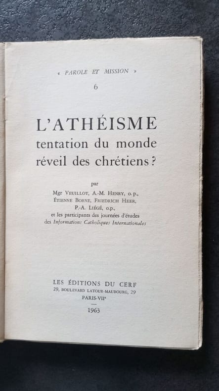 Sommaire : Comment discerner les causes de l'atheisme. Atheisme et sciences. Atheisme et techniques. Atheisme et psychanalyse. Atheisme et Marxisme. Classification Dewey : 200-RELIGION
