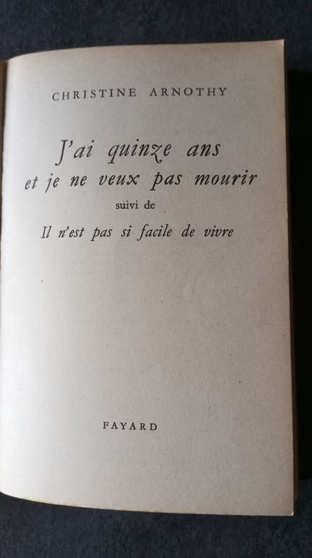 1988 1988. Christine Arnothy: J'ai quinze ans et je ne veux pas mourir/ LDP 1988 . Christine Arnothy: J'ai quinze ans et je ne veux pas mourir/ LDP 1988