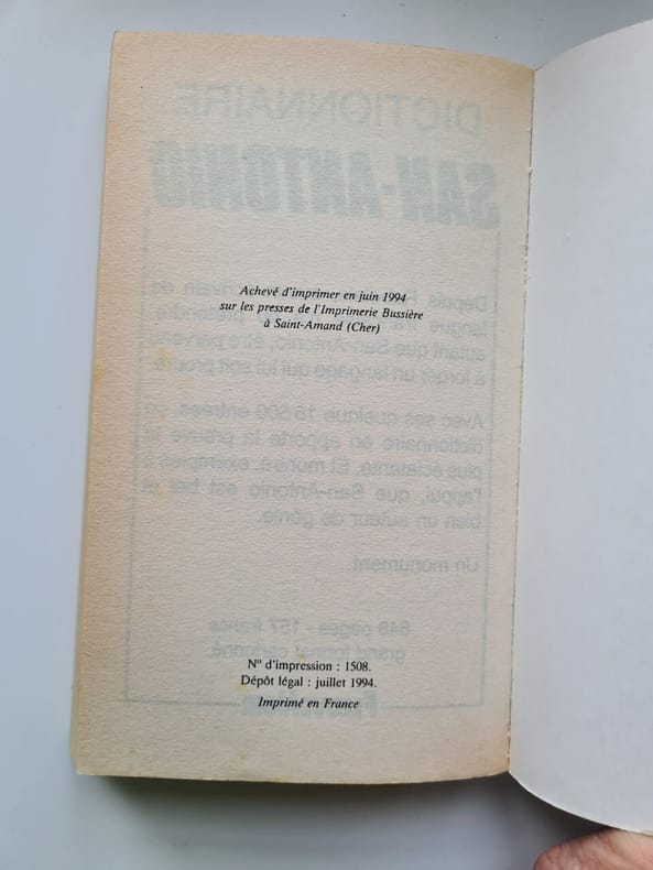 Paris, Editions Fleuve Noir, N°161 Super San-Antonio, 1994, poche, Broché, 283 pages. Très bon état