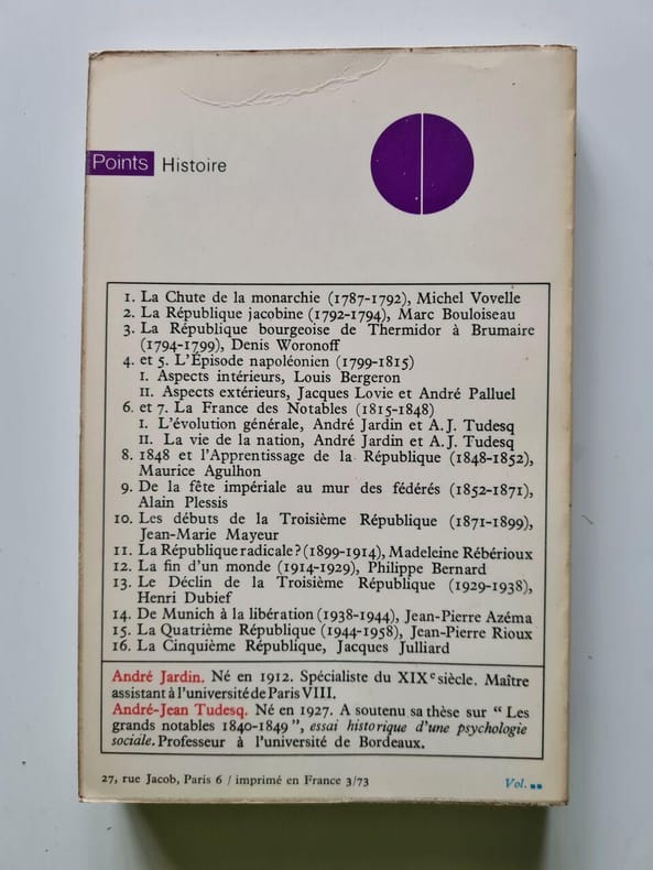 Paris Seuil 1973 In 12 Collection " points " . Série - Histoire - .Chronologie , Bibliographie et index des noms de personnes . Histoire France et Gaule .- 254 p. , 350 gr.