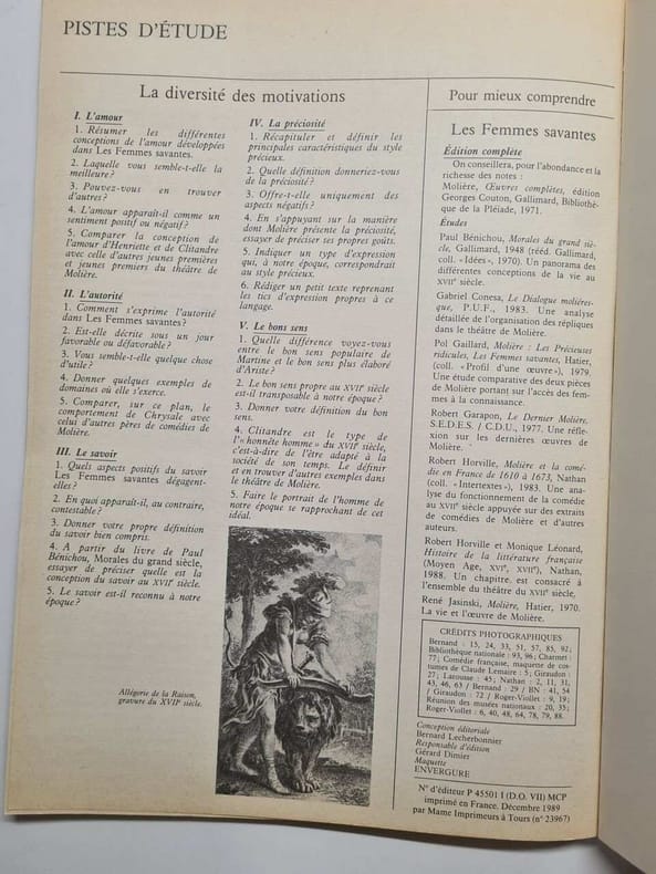 Les femmes savantes, Molière / Molière de 1622 à 1673 / les femmes et la société du 17eme siècle / l'interprétation des femmes savantes par Sylvie Chevalley / Musset à 18 ans / un caprice, de A. de Musset... Classification Dewey : 792-Théâtre