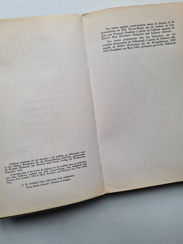 ARTHAUD. 1965. In-4. Broché. Bon état, Couv. convenable, Dos satisfaisant, Intérieur frais. 249 pages - couverture contrepliée - illusration en monochrome sur le 1er plat. Un document fondamental sur la guerre 1939-1945 - Clefs de l'aventure clefs du savoir 66.. . . . Classification Dewey : 943.086-IIIe Riech. Hitler, 1933-1945