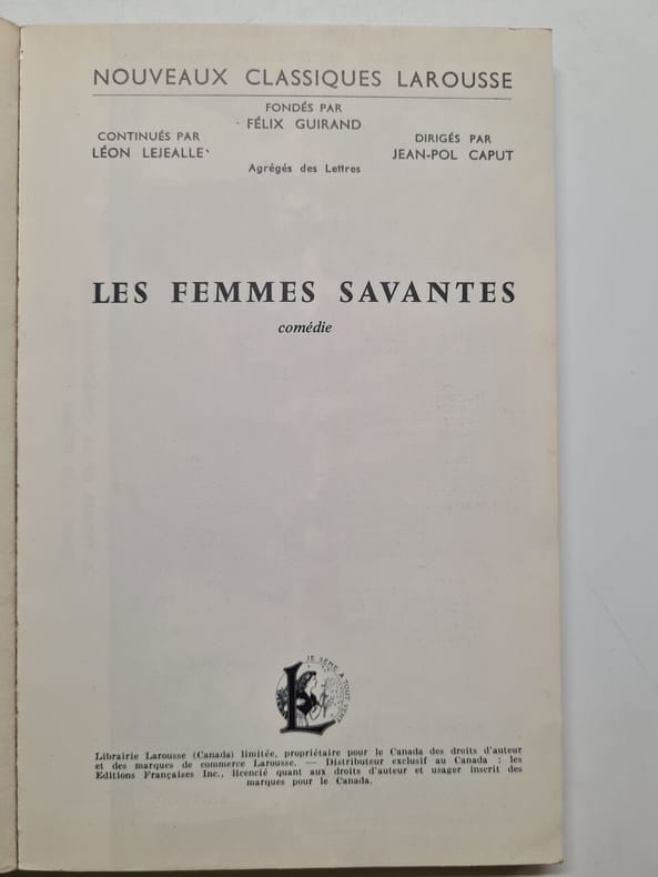 Editions Larousse 1971 1971. Molière: Les femmes savantes/ Nouveaux Classiques Larousse 1971 . Molière: Les femmes savantes/ Nouveaux Classiques Larousse 1971