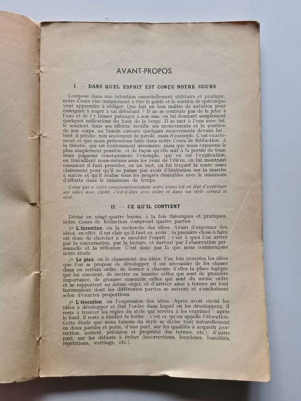 "inconnu. non daté. In-8. Broché. Etat passable, 1er plat abîmé, Dos abîmé, Papier jauni. 129 pages - 1er plat absent - page de titre, page de faux titres absentes, ouvrage débutant à la page ""avant propos"" - coiffe en tête abîmée - coiffe en pied absente - annotation et tâche sur le 2ème plat - quelques mots soulignés au stylo à l'intérieur du livre sans conséquence sur la lecture.. . . . Classification Dewey : 372.6-Livre scolaire : français"