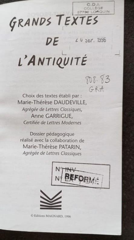 Magnard 1996 1996. Exemplaire de bibliothèque déclassé