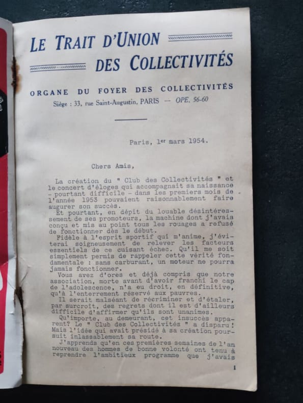 EDITION DU FOYER DES COLLECTIVITES. 1954. In-8. Broché. Etat d'usage, Plats abîmés, Dos abîmé, Mouillures. 154 pages - Nombreuses pages publicitaires - Nombreuses photos en noir et blanc dans texte et nombreuses illustrations en couleurs dans et hors-texte - Agrafes rouilléles - Coiffe en pied partiellement manquante - 2 PHOTOS DISPONIBLES (dont SOMMAIRE). . . . Classification Dewey : 70.49-Presse illustrée, magazines, revues