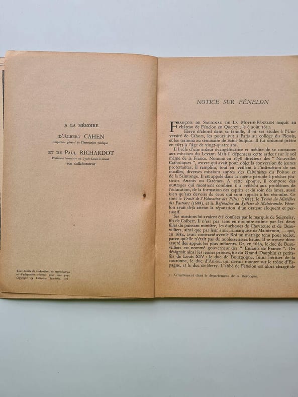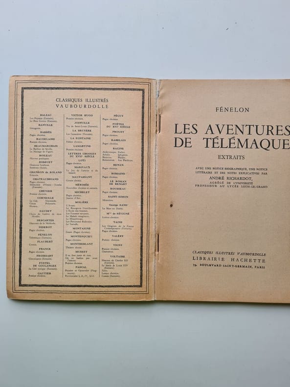 1730, chez la Veuve Delaulne, in-4 relié de 2 fois 290 pages, deux volumes reliés en un seul, Les avantures de Télémaque, fils d'Ulysse, par Feu Messire françois de Salignac de la Motte Fenelon, nouvelle édition enrichie de figures en taille-douce | Etat : Très bon état général (Ref.: G7972)