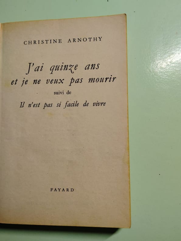 1988 1988. Christine Arnothy: J'ai quinze ans et je ne veux pas mourir/ LDP 1988 . Christine Arnothy: J'ai quinze ans et je ne veux pas mourir/ LDP 1988