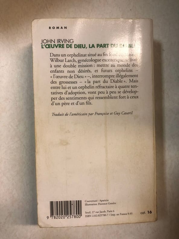 L'oeuvre de Dieu, la part du Diable. Roman. Traduit de l'américain (Paris: Seuil, 1986) [M.C.: roman]