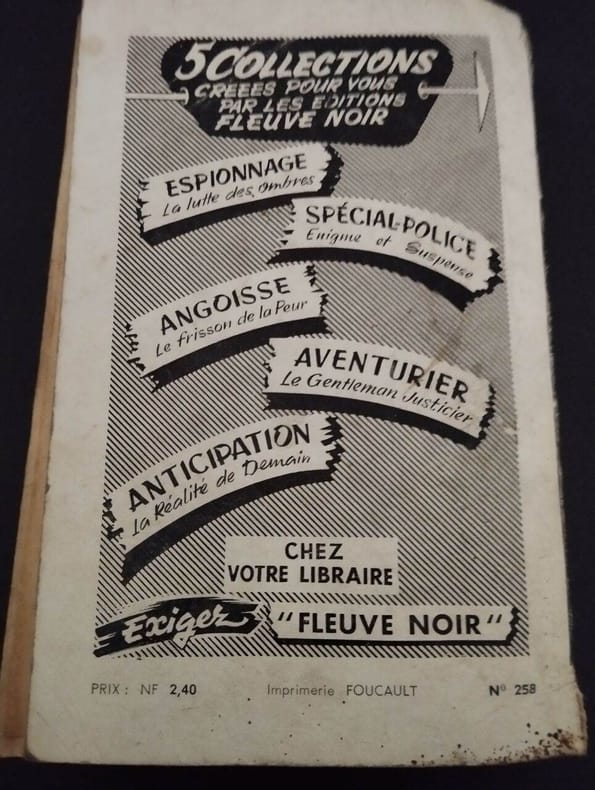 "EDITIONS FLEUVE NOIR COLLECTION "" ESPIONNAGE "" N° 258. 1960. In-12. Broché. Bon état, Couv. convenable, Dos satisfaisant, Intérieur frais. 220 pages.. . . . Classification Dewey : 843.0872-Le roman policier"