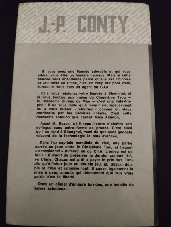 Paris, Editions fleuve noir espionnage, 1972; in-12, 233 pp., broché, couverture illustr. N°992.