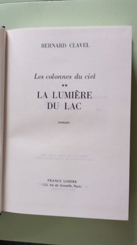 Éditions J'ai lu 1987 1987. Bernard Clavel: Les colonnes du ciel: La lumière du lac/ J'ai lu 1987 . Bernard Clavel: Les colonnes du ciel: La lumière du lac/ J'ai lu 1987