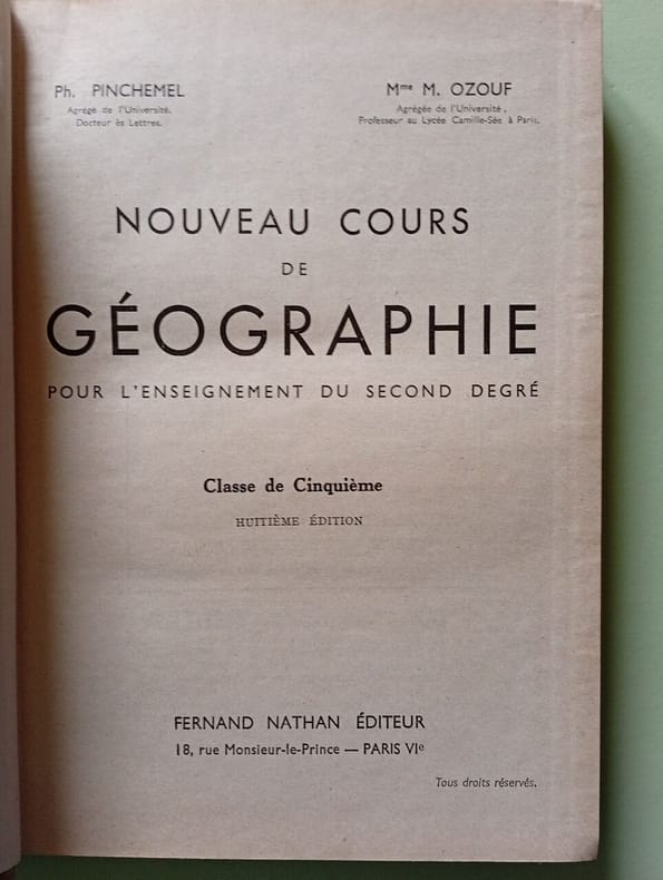 Nouveau cours de géographie, conforme aux programmes de 1937-38, sous la dir. de E. Colin et G. Legaret. Classification Dewey : 372.89-Livre scolaire : histoire / géographie