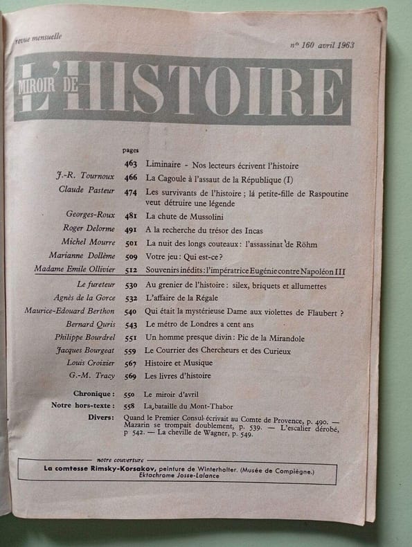 "Le miroir de la seconde guerre mondiale : décembre - Le 11 novembre 1918 - Menace sur le Cambodge - Le schisme yougoslave - Les Ballons - Nixon entre deux campagnes - Révolutions au Mexique : Zapata et Pancho Villa - ""London high society"" pré-victorienne - La querelle des vins de Bourgogne et de Champagne - Isadora Duncan, prêtresse de l'amour et de la danse - Charles Bonaparte, l'opportuniste ""padre"" de Napoléon - L'origine des techniques Classification Dewey : 900-GEOGRAPHIE, HISTOIRE, SCIENCES AUXILIAIRES DE L'HISTOIRE"