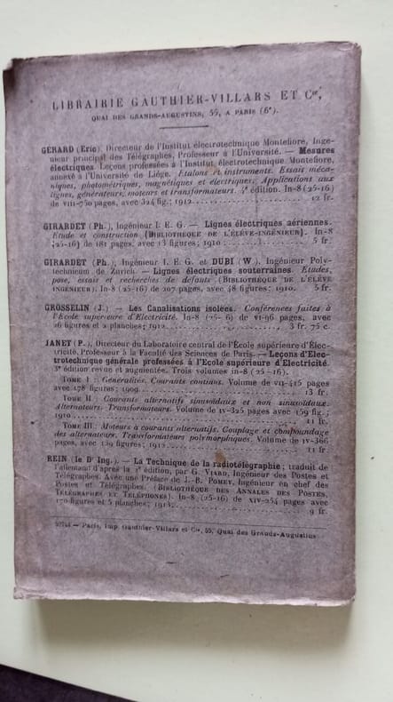 P, Gautier Villars 1914,in12br,160pp, 1 planche dépliante hors texte Langue: Français