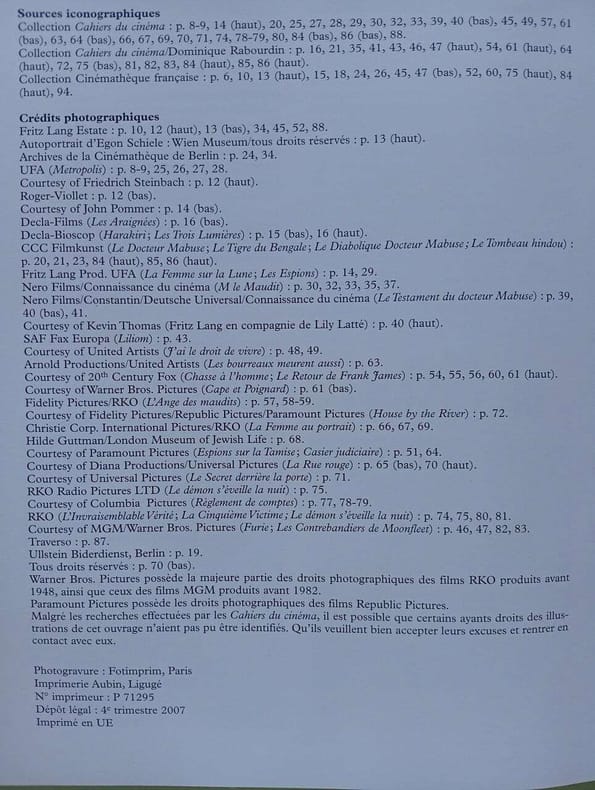 Paris Armand Colin 1991 1 vol. relié in-4, cartonnage illustré, 234 pp., nombreuses photos en noir. Basé sur les documents de travail de The Big Heat (Règlement de comptes) déposés par Fritz Lang à la Cinémathèque Française, ce livre d'enquête et d'analyse revisite la notion d'auteur de film et la nature des relations entre scénarisation et mise en scène dans le cinéma hollywoodien des années 1950. Très bon état. Exemplaire provenant de la bibliothèque d'Alain Resnais.