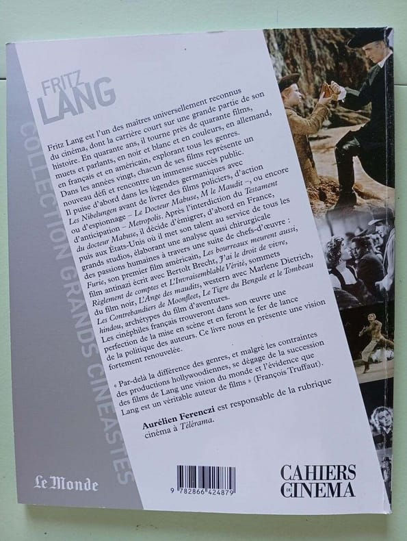 Fritz Lang commente les chefs-d’oeuvre de sa période américaine. C’est à la complicité amicale de Peter Bogdanovich qui allait passer à la mise en scène peu après, que l’on doit ce long entretien où, pour la première et unique fois, Fritz Lang acceptait de commenter, film après film, les chefs-d’oeuvre ( Fury, RanchoNotorious, the Big Heat, Moonfleet …) qui ont jalonné sa période américaine. Lang développe les principes de cet art souverain de la mise en scène qui est la marque de tous ses films, mais insiste aussi sur le travail permanent de réécritures des scénarios qui lui étaient soumis. Exigence que l’on retrouve dans ses rapports tendus ou privilégiés avec de stars comme Sylvia Sidney, Marlene Dietrich ou Joan Bennett. Il y évoque également, non sans humour, ses démêlés avec la censure, le maccarthysme, ainsi que les difficiles combats qu’il dut mener pour garder son indépendance au sein des studios.