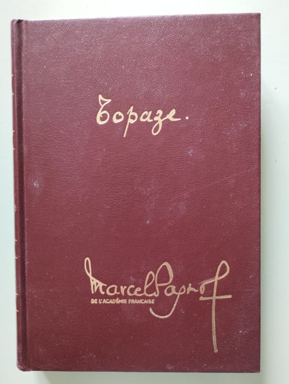 « La collaboration de ces deux grands méridionaux que furent l'écrivain Marcel Pagnol et le dessinateur Albert Dubout est tenue pour capitale pour la compréhension de leur oeuvre respective. Pourtant, elle ne prit effet qu'en 1936, alors que Pagnol écrivait pour le théâtre depuis 1923. Dubout de son côté, âgé de 31 ans, était déjà célèbre. C'est par l'intermédiaire du caricaturiste Toé, directeur de la publicité de la Société des films de l'écrivain, que Dubout fit la connaissance de Pagnol et réalisa la première affiche de César, qui venait d'être porté à l'écran. Dès lors, de Fanny à Manon des Sources, l'artiste réalisa des affiches pour tous les films de Pagnol, qui contribuèrent notamment à l'immense popularité de l'oeuvre du dramaturge. Parallèlement, par leur qualité, les illustrations de Dubout participèrent au succès de librairie des romans de Pagnol (...) Maître du jeu, Dubout laisse libre cours à son imagination débridée, ponctuée de connotations comiques et grivoises. Il affectionne les contrastes les plus étonnants et a parfois recours à des effets de plongée et de contre-plongée, familiers au cinématographe. C'est le cas dans les illustrations de Topaze, par exemple, dans le but de renforcer la puissance économique et politique de certains individus, ou de mettre en évidence le contexte social dans lequel ils évoluent » (Solange Vernois, Marcel Pagnol et Albert Dubout : la dynamique de la création, in Tierce, Université de Poitiers, n° 2-2017). L'illustration pour César constituera le point de départ d'une longue amitié que liera les deux hommes : Marcel Pagnol confiera en 1948 à Dubout l'illustration de la Trilogie Marius, Fanny, César. C'est un énorme succès. Suivra Topaze, en 1952, puis la trilogie des Souvenirs d'enfance, entre 1958 et 1965, en ayant donné auparavant nombre d'affiches de ses films : sa célèbre trilogie, La Fille du puisatier, La Femme du boulanger, Topaze, La Gloire de mon père, Le Château de ma mère, Le Temps des secrets, Merlusse, Angèle, Naïs... A l'issue de la parution de la deuxième trilogie, en 1958, Pagnol aura ces mots : « Mon cher Albert, J'admire notre livre. C'est une très belle réussite et je crois que tu es arrivé au sommet de ton talent. Tes couleurs sont aussi belles, aussi originales que ton dessin. Tu es sans aucun doute le plus grand illustrateur de notre temps, et ton trait est incomparable. Une sûreté, une force et une finesse qui font penser aux plus grands asiatiques. [...] Un régal pour l'oeil, Albert tu es le roi. » (Lettre de Pagnol à Dubout, Cagnes, 20 mars 1959). Il est joint un certificat, daté et signé du 23 avril 2021, de Didier Dubout (petit-fils et ayant-droit de son grand-père), certifiant que l'exemplaires faisait bien partie de la bibliothèque personnelle d'Albert Dubout et "qu'il s'agit du seul envoi connu de la famille de Marcel Pagnol à Albert Dubout". Un second exemplaire sur une oeuvre commune est néanmoins apparu depuis, mis à la connaissance de la famille : la première édition de Marius, illustrée par Dubout à la Libération, en 1945, qui porte cet envoi : " pour mon cher Albert Dubout, avec mon affection et mon admiration, son ami, Marcel Pagnol ", Ainsi qu'une édition d'un texte seul, celui de La Gloire de mon père et Le Château de ma mère, avec ces envois : « pour mon cher Albert, avec mon affection, Marcel Pagnol, 1957 » ; « pour Albert Dubout, hommage au travailleur ! Marcel ». On joint un portrait de Dubout par Albert Decossy, dédicacé. 27591