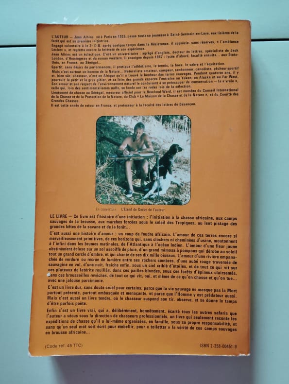 Souvenirs de quatorze années de chasse en brousse : les camps sauvages, les marches forcées, le pistage des grands animaux. Réédition de ce grand classique.Engagé volontaire dans la 2e DB, Jean Alhinc (1926- 1990) a suivi une carrière universitaire exemplaire : agrégé d'anglais, docteur ès lettres, professeur. C'est aussi un sportif complet, amoureux de la nature. Chasseur, pêcheur, campeur, randonneur, canoéiste, sa soif des grands espaces l'entraîne au Yukon, en Alaska et bien sûr en Afrique, où il passe quatorze ans comme professeur à l'université de Dakar. Alhinc était lieutenant de chasse au Sénégal, membre du CIC et du Comité des grandes chasses, mesureur officiel pour le Rowland Ward. Dans une belle langue classique, l'auteur raconte sans fard ses safaris et fait partager son enthousiasme pour la grande chasse africaine. Voir le sommaire sur photos jointes.