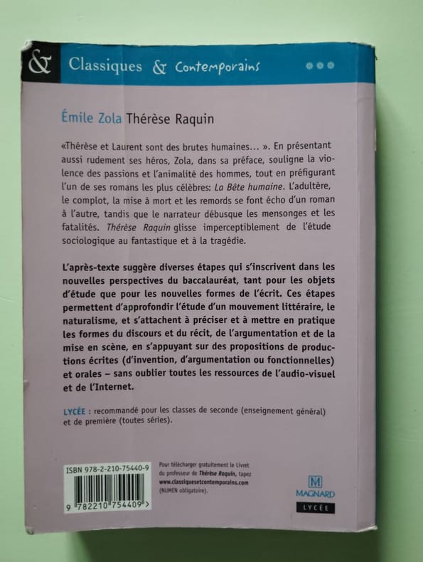 Bon Etat de conservation couverture de "Thérèse Raquin" défraîchies intérieurs propres