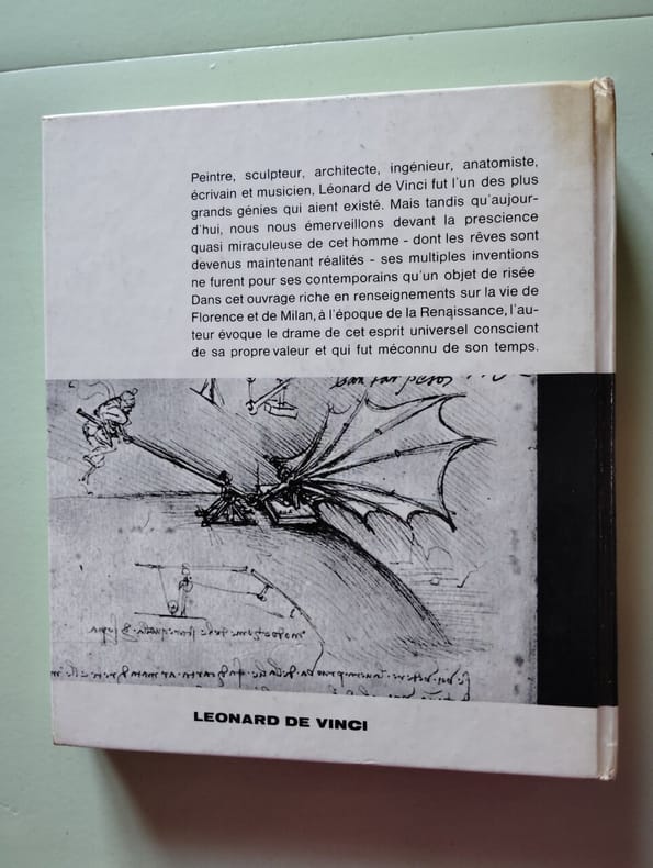 très nombreuses reproductions des manuscrits de Léonard de Vinci avec des dessins en couleurs, quelques photographies en noir et blanc de reconstitutions de machines 1ere traduction en français Contents, Chapitres : Carlo Pedretti : Préface - Alessandro Vezzossi : Engrenages de cosmogonie - Marco Cianchi : Léonard de Vinci et les machines - Machines de guerre - Machines hydrauliques - Machines volantes - La mécanique de Léonard tres legere courbure sans gravité au coin supérieur droit du volume, sinon bon état, intérieur frais et propre