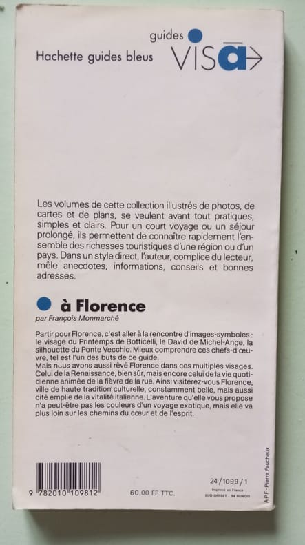 L'Athènes de l'Italie et ernest Renan. Florence dans l'antiquité et au moyen âge - Mars et St Zanobi,illustré de gravures: panorama de Florence,vue du Viale dei Colli et du palais Pitti. Le XIVème siècle - essor des Lettres,des Arts et de l'Industrie. La Renaissance,illustré d'une gravure des Médicis sous le costume des Rois Mages ( reproduction d'une fresque de Benozzo Gozzoli,palais Riccardi). Le XVII,le XVIII et le XIXème siècle - les derniers Médicis et les princes de Lorraine-un grand citoyen florentin, illustré de gravures dont une de l'intérieur du Ponte Vecchio. La Florence d'autrefois et la Florence moderne - le Mercato vecchio et le Ghetto,illustré de gravures de vues du marché vieux, gravures dans le texte: le ghetto, panorama de Florence. Le Ponte vecchio - orfèvres et mosaïstes florentins. le Baptistère et la Renaissance du XIIème siècle. Les portes de bronze - André de Pise et Ghiberti,illustré d'une gravure du panorama de Florence pris du palais-vieux. Les mosaïques byzantines du Baptistère - le tombeau d'un ex-pape. La loge du Bigallo-art et bienfaisance,illustré d'une gravure d'une vue de la cathédrâle de Florence. Le Campanile de Giotto,illustré de gravures dans le texte des bordures des portes du baptistère et de la décollation de St Jean Baptiste par Vinc. Danti (porte du baptistère). La cathédrâle (1296-1887)-la nef et la coupole-Arnolfo et Brunellesco,illustré de gravures dont: façade de la cathédrâle de Florence. Gravures dans le texte: la loggia del Bigallo, fragment du pavement du baptistère, détails du campanile (statues de Donatello). La façade - incrustations et sépultures-les Précurseurs de Donatello,illustré d'une pleine page de panoramas de Florence (la cathédrâle et le palais vieux - le clocher de la Badia et le Bargello-le Pont Vieux), dessins par Berteault d'après photos et de gravures dans le texte (fronton de la porte de la Mandorla,la sibylle tiburtine campanile). La cathédrâle: intérieur,Ghiberti,Donatello,della Robia et Michel Ange illustré dans le texte d'une gravure du bénitier gothique de la cathédrâle de Florence. Gravure pleine page de Lung Arno Nuovo et via de Cerretani. Les peintures de la cathédrâle,illustré dans le texte d'une gravure de la statue de St Jean assis par Donatello, gravure pleine page du pont Evecchio. le musée de l'opéra del Duomo. Classification Dewey : 70.4412-Le journal des voyages