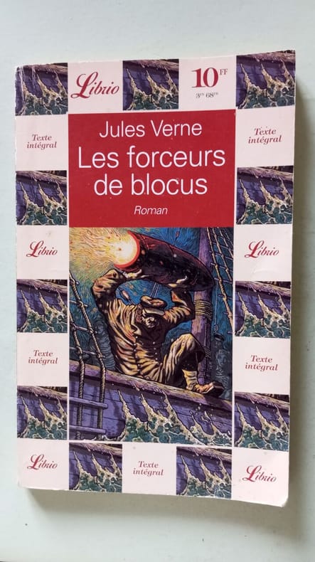 ( collection les Voyages extraordinaires) Edtion illustrée de 44 dessins par Férat et gravés par Pannemaker et Hildibrand Cartonnage monochrome appelé "aux initiales JV - JH" car comportant les initiales JV (pour Jules Verne) dans le médaillon supérieur, et les initiales JH (pour Jules Hetzel) dans le médaillon inférieur. Ce roman a été publié en même temps que Les Forceurs de blocus. Roman datant de 1870 et qui se déroule sur le Great Eastern, un paquebot gigantesque avec à son bord plusieurs milliers de personnes, sur le trajet Liverpool-New-York. Les forceurs de blocus est une longue nouvelle maritime ayant pour cadre la guerre de Secession. On y assiste à la lutte de la voile contre la vapeur. vol. in-4, 280x190, cartonnage rouge, tassement de la coiffe, bel état intérieur, rousseurs éparses, étiquettes de prix contrecollés, nombreuses gravures, toutes tranches dorées, 171pp. Hetzel, sans date circa 1875