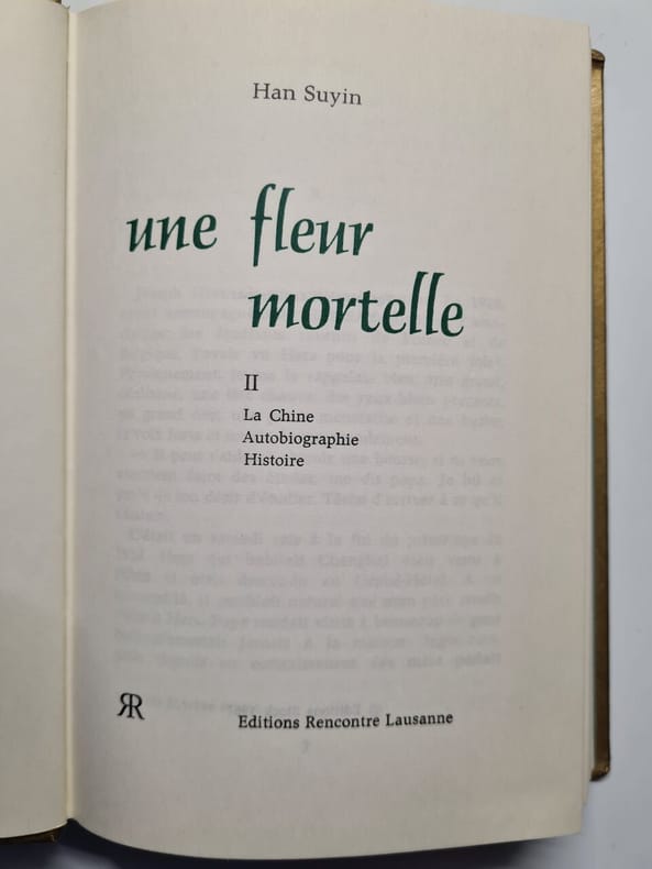 LA CHINE, AUTOBIOGRAPHIE, HISTOIRE 3 volumes de Han Suyin UN ÉTÉ SANS OISEAUX, 396pp, illustré, Stock 1968 UNE FLEUR MORTELLE, 404pp, illustré, Stock 1967 L'ARBRE BLESSE, 485pp, illustré, Stock 1967 vols gd in8, 200x160, jolies reliures demi cuir, dos à nerfs, légers frottements, très bon état intérieur ref/c48