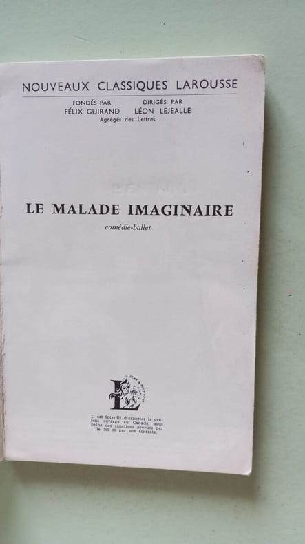 Editions Larousse Sans date. Molière - Le malade imaginaire/ Nouveaux Classiques Larousse